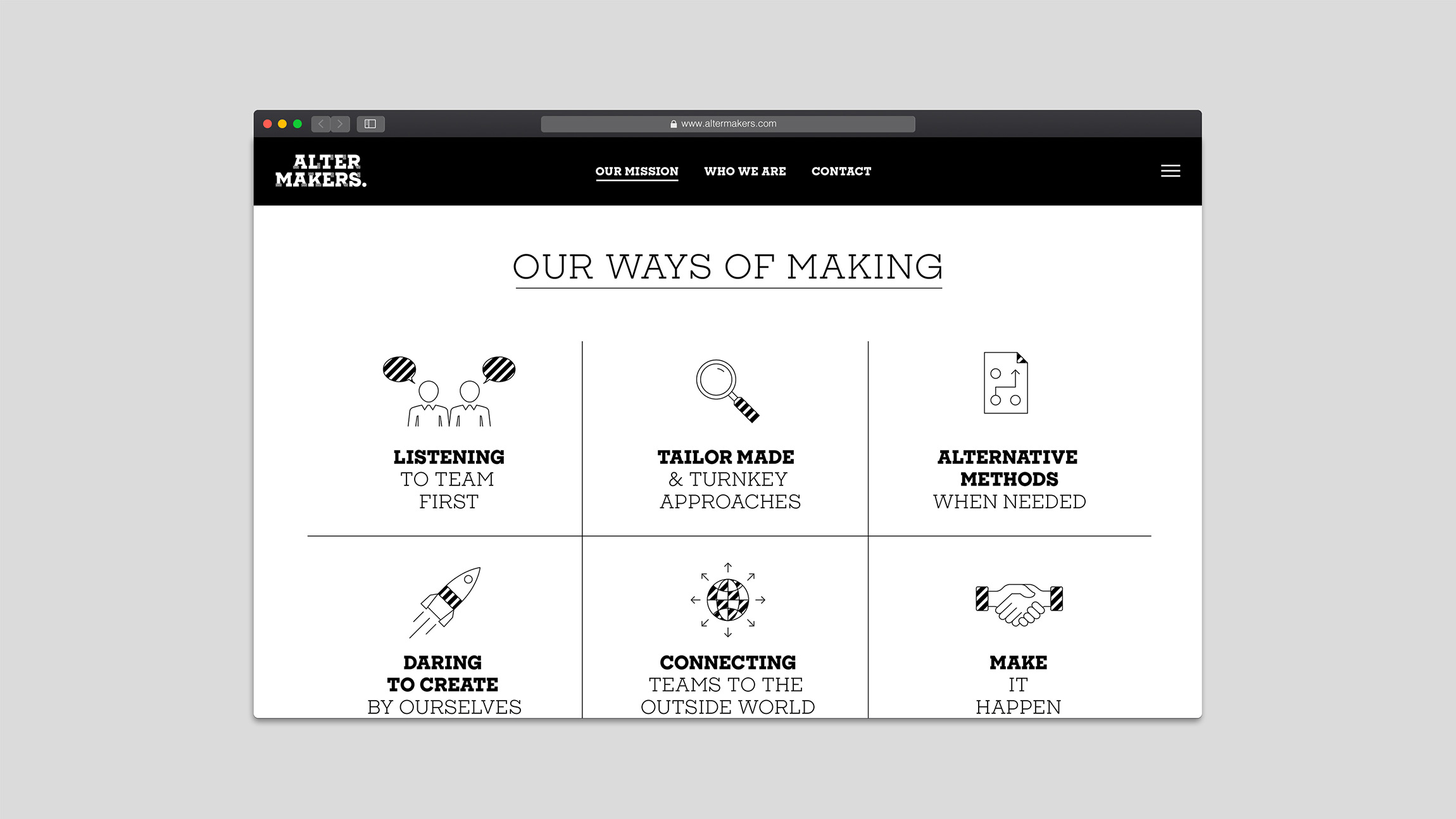 Conception de l’identité graphique du Conseil collectif alternatif Altermakers basée à Paris.
