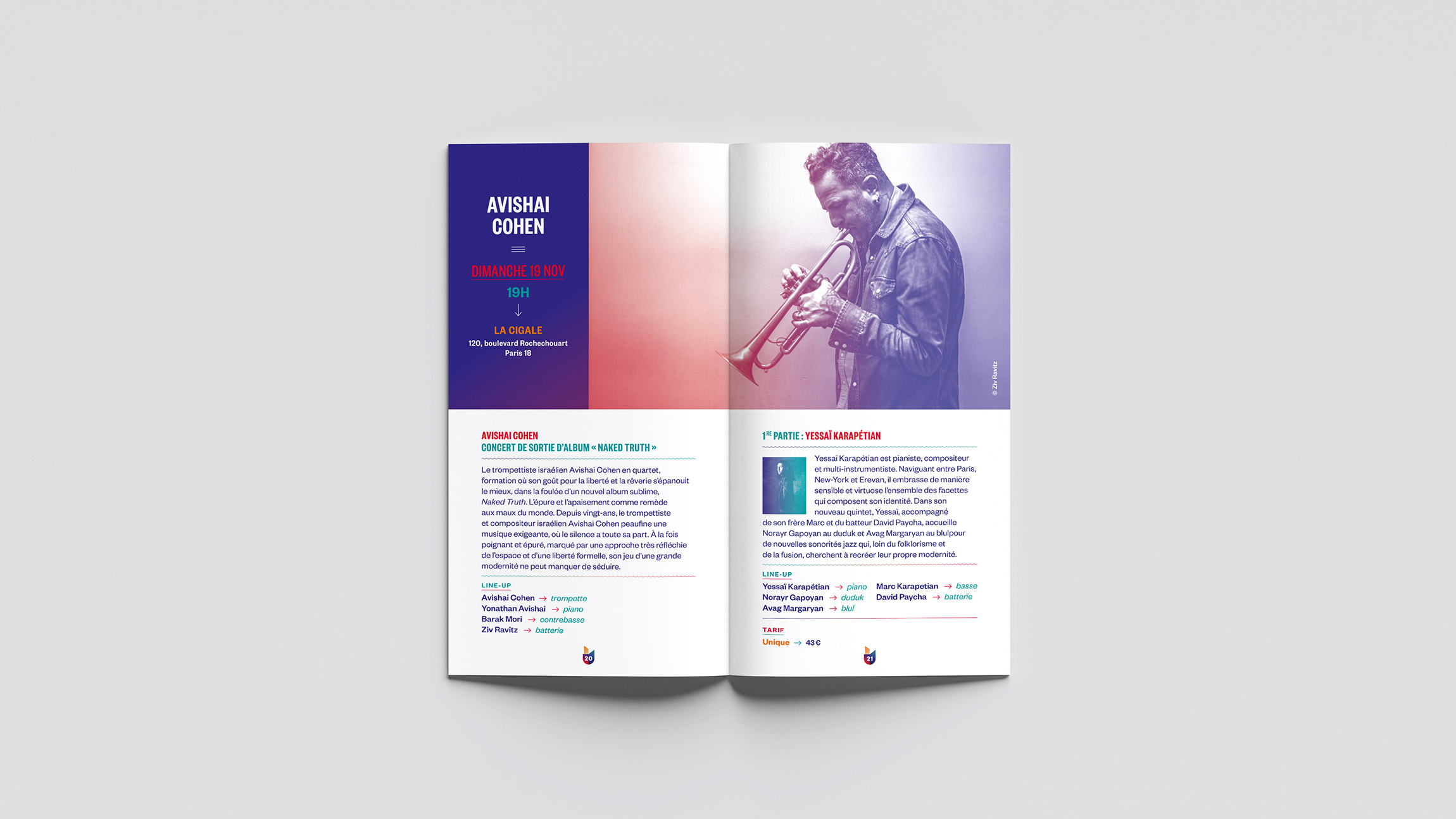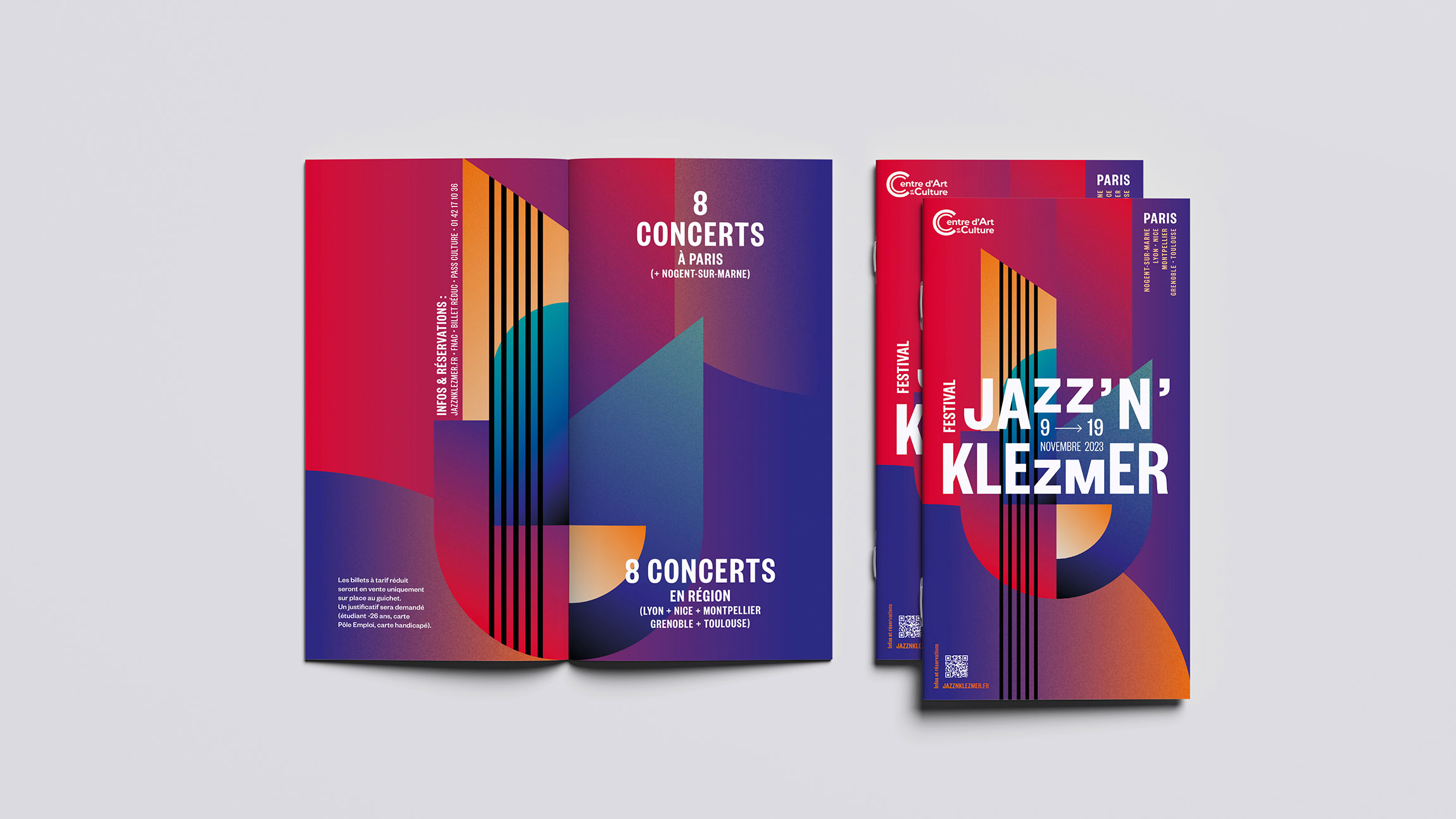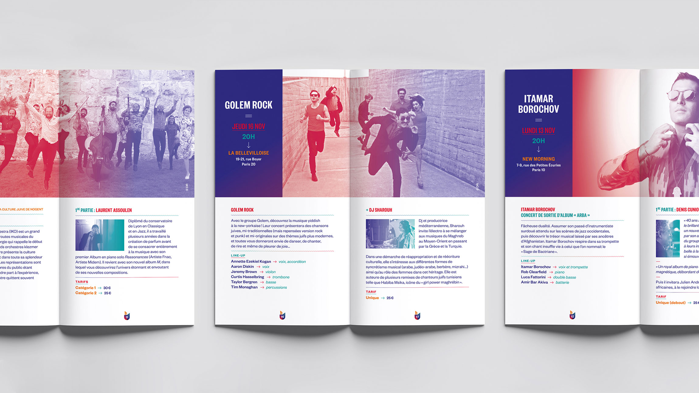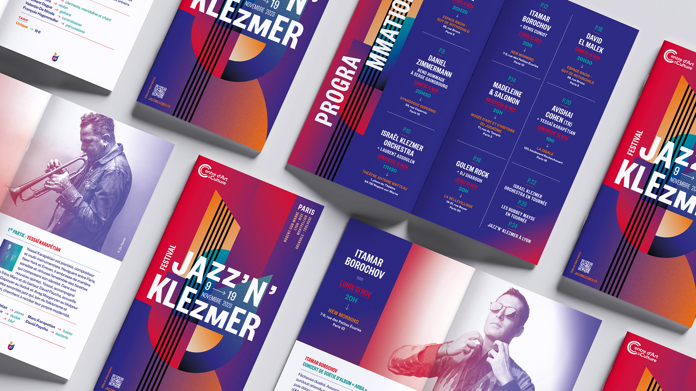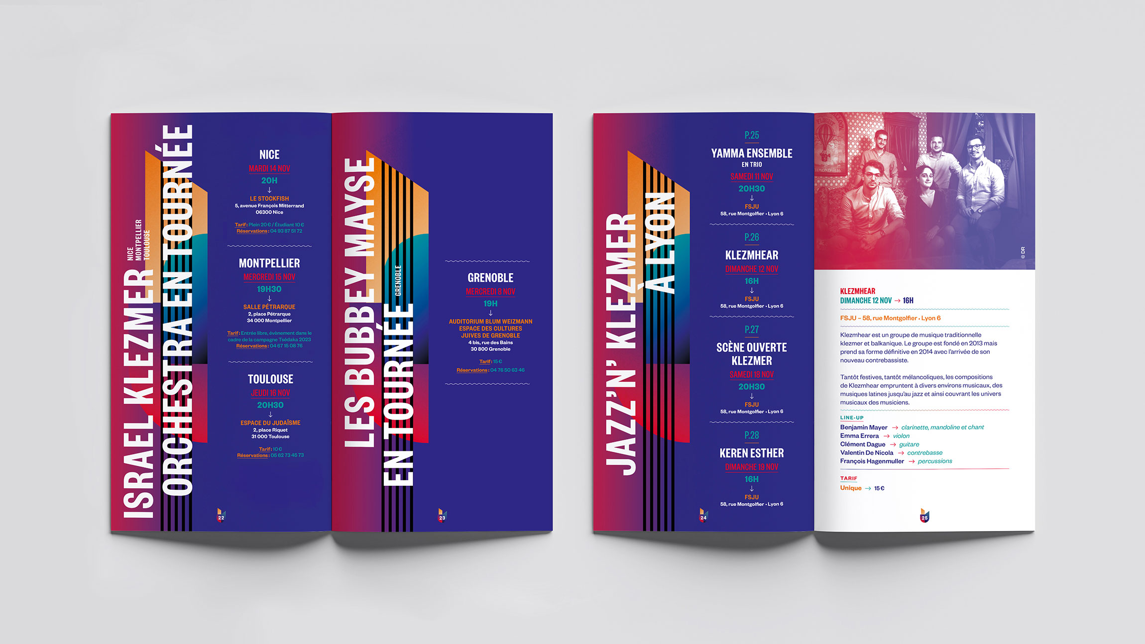Conception de la charte graphique print du Festival Jazz N’Klezmer ayant lieu dans toute la France.