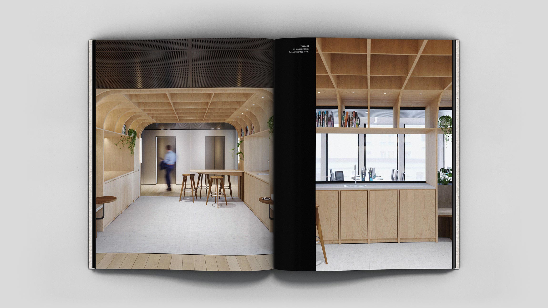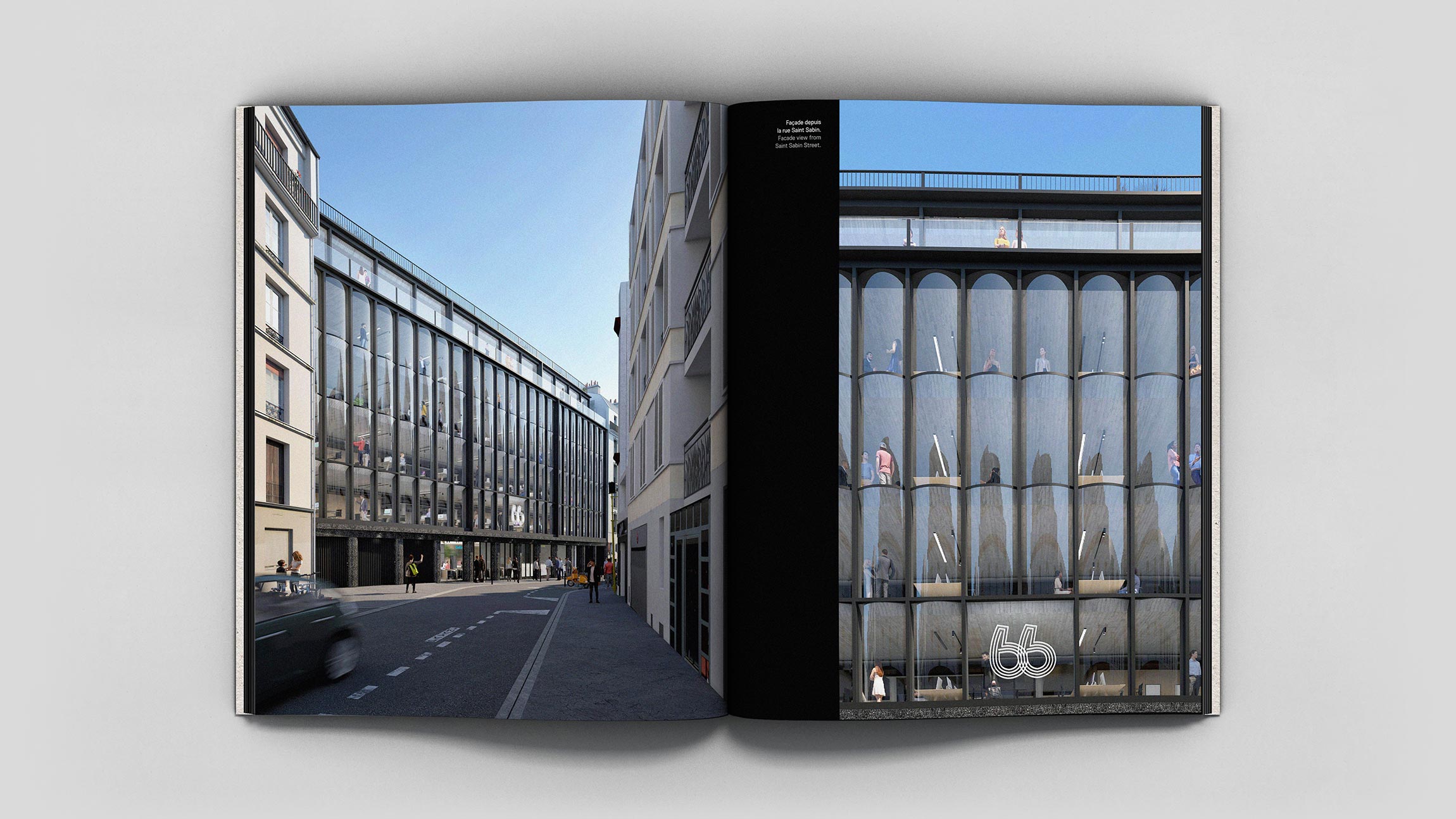 Conception graphique de l’ouvrage présentant le bâtiment “X”: ancien siège de Médecins Sans Frontières, situé rue Saint-Sabin (Paris). La nouvelle architecture accueillera le siège social de BlaBlaCar en 2021.