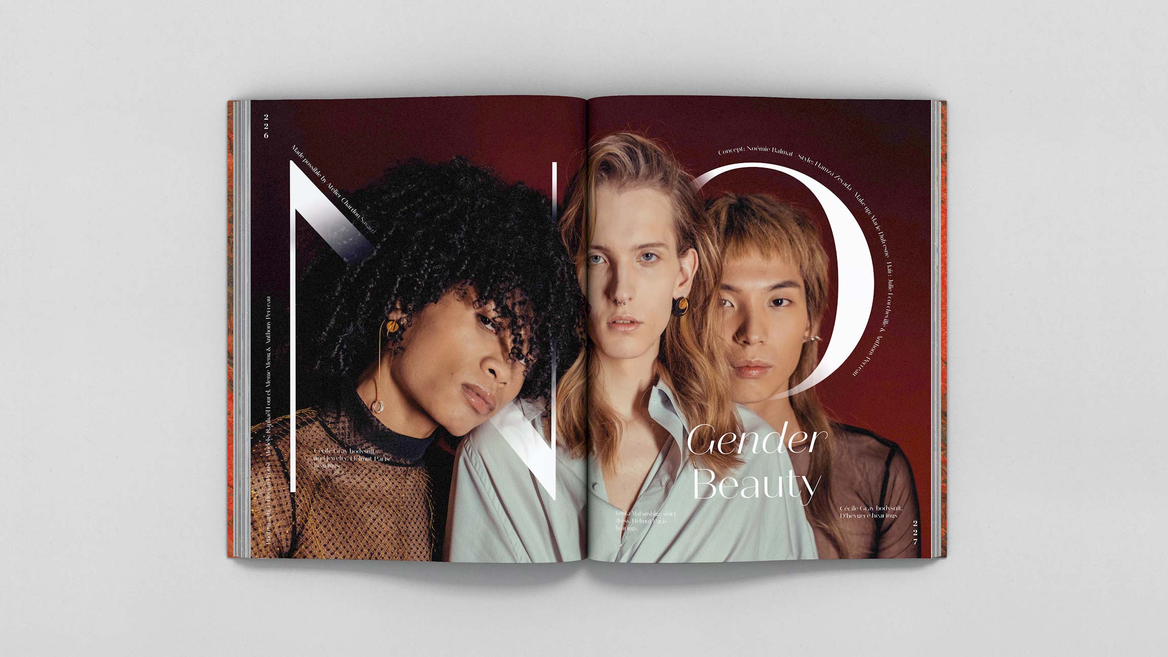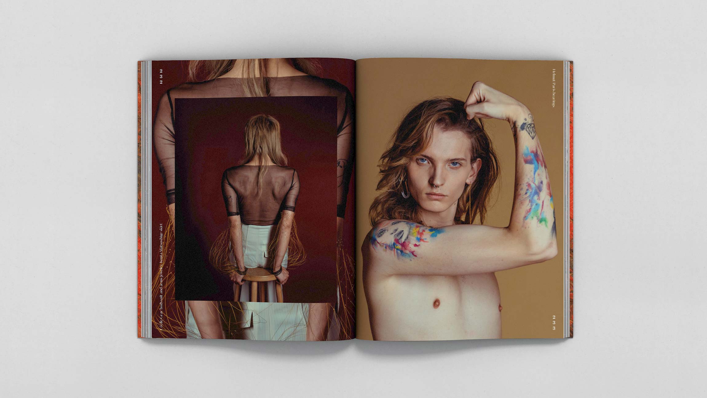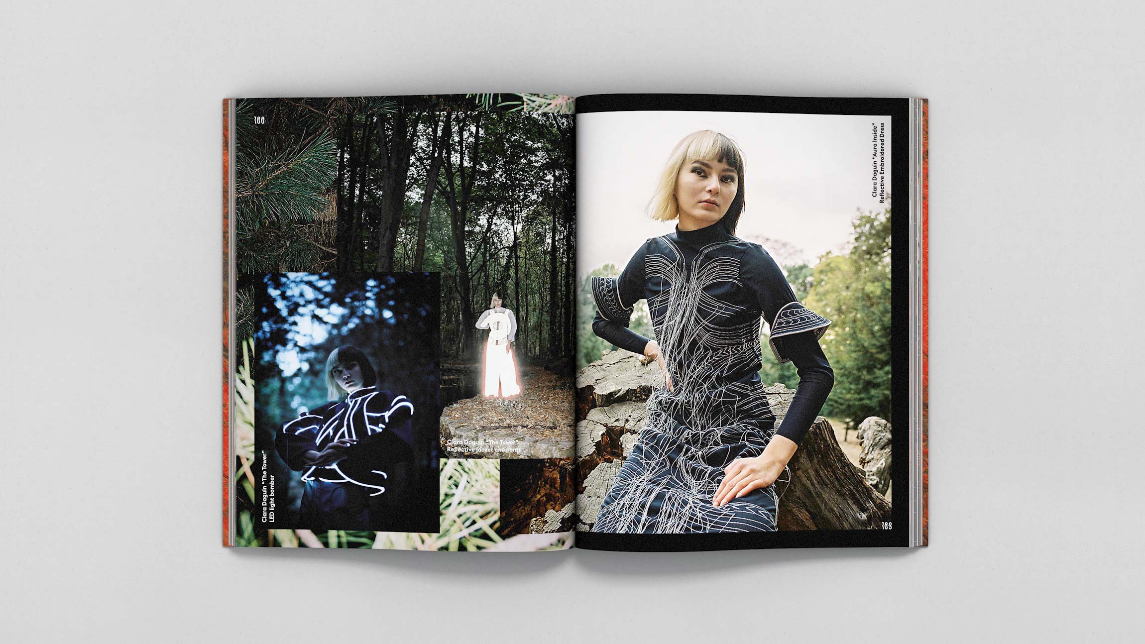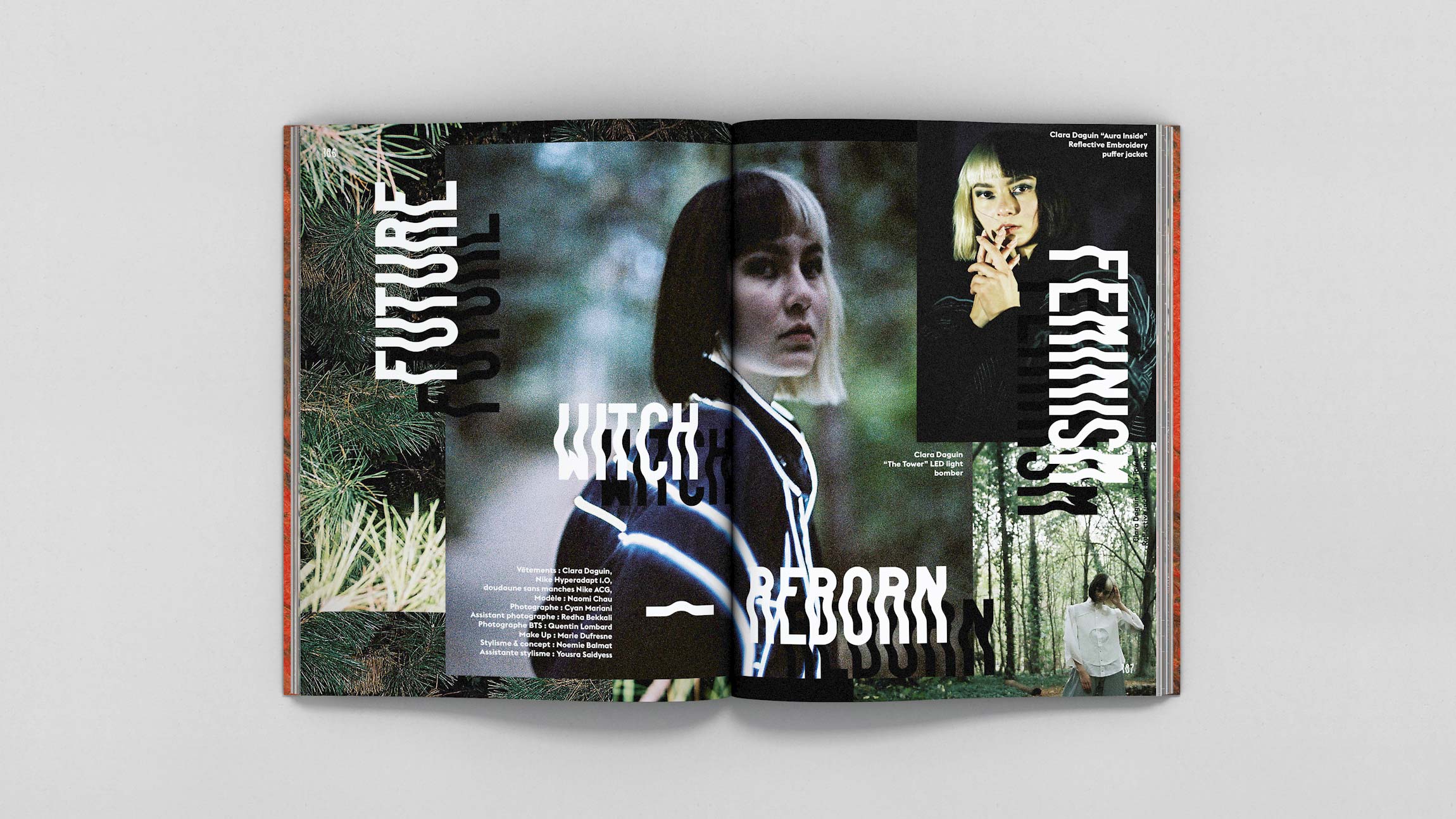 Conception graphique des parties “Editorials” et “Hyperpositions” du magazine .Futur (traitant de la place et l’impact de la mode dans la société actuelle.)