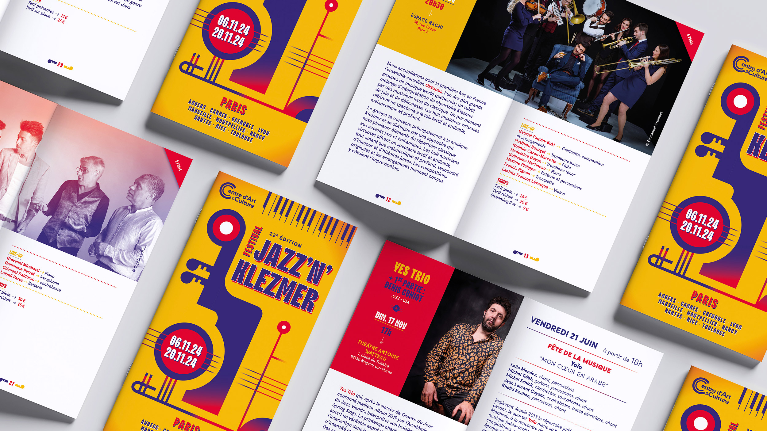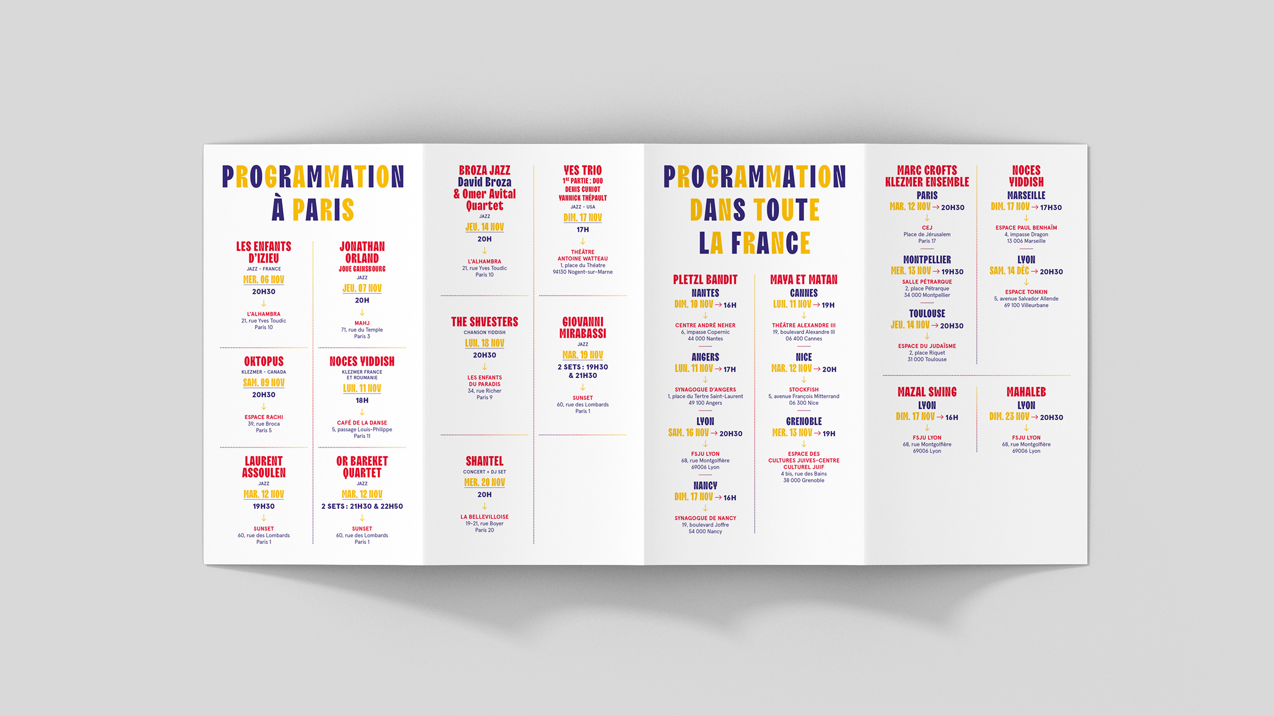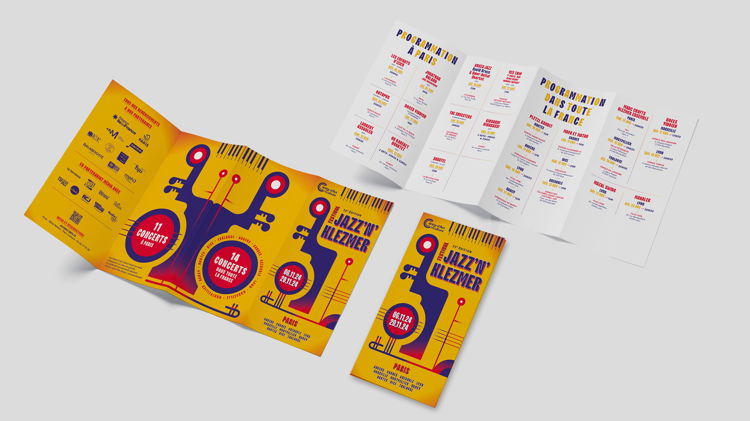 Conception de la charte graphique print du Festival Jazz N’Klezmer ayant lieu dans toute la France.