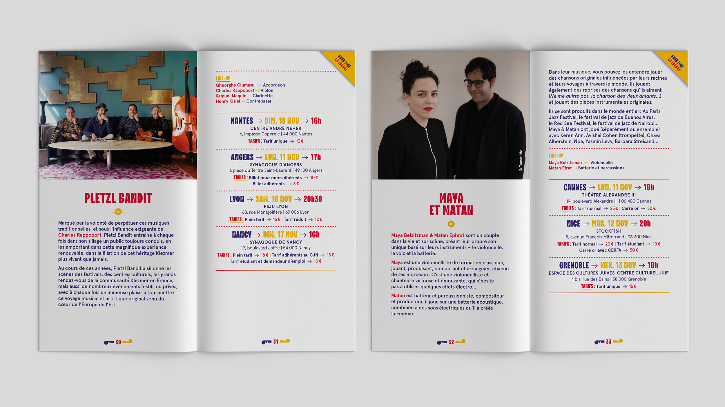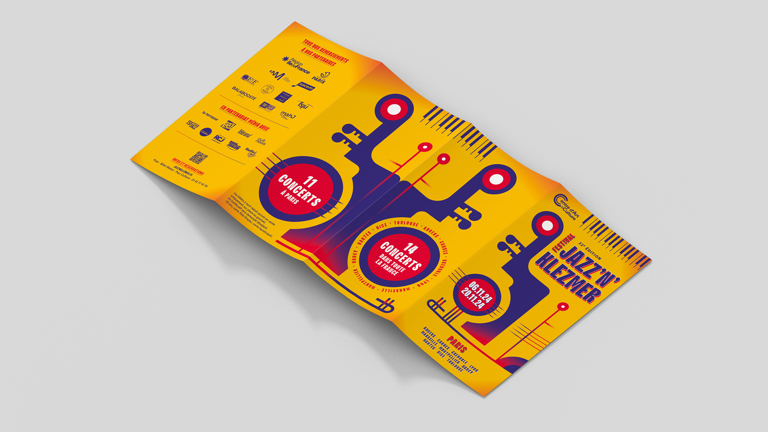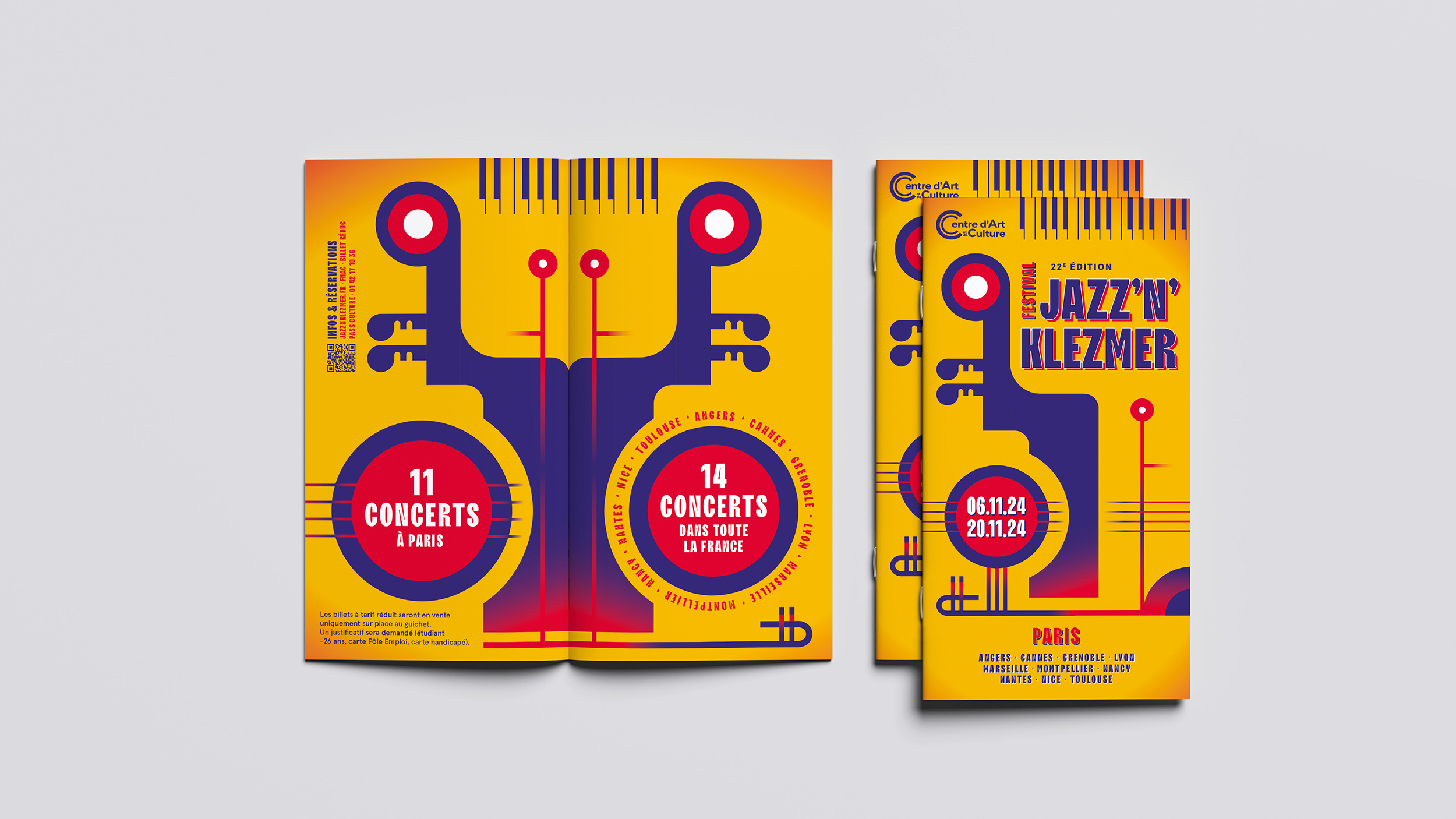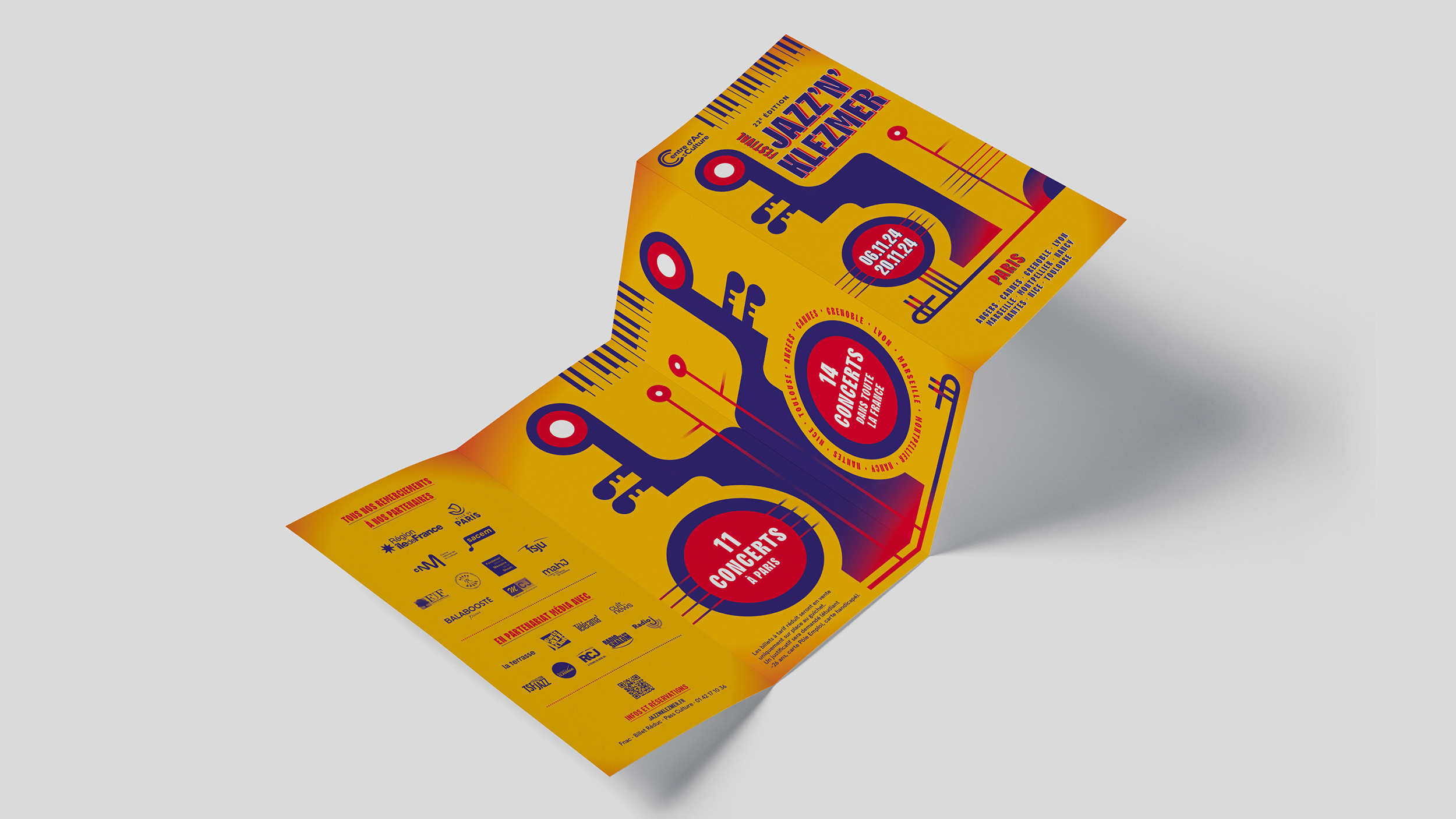 Conception de la charte graphique print du Festival Jazz N’Klezmer ayant lieu dans toute la France.