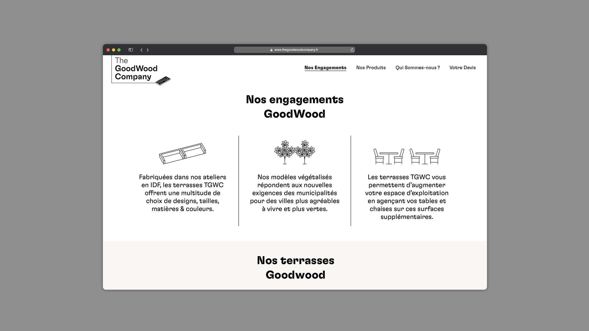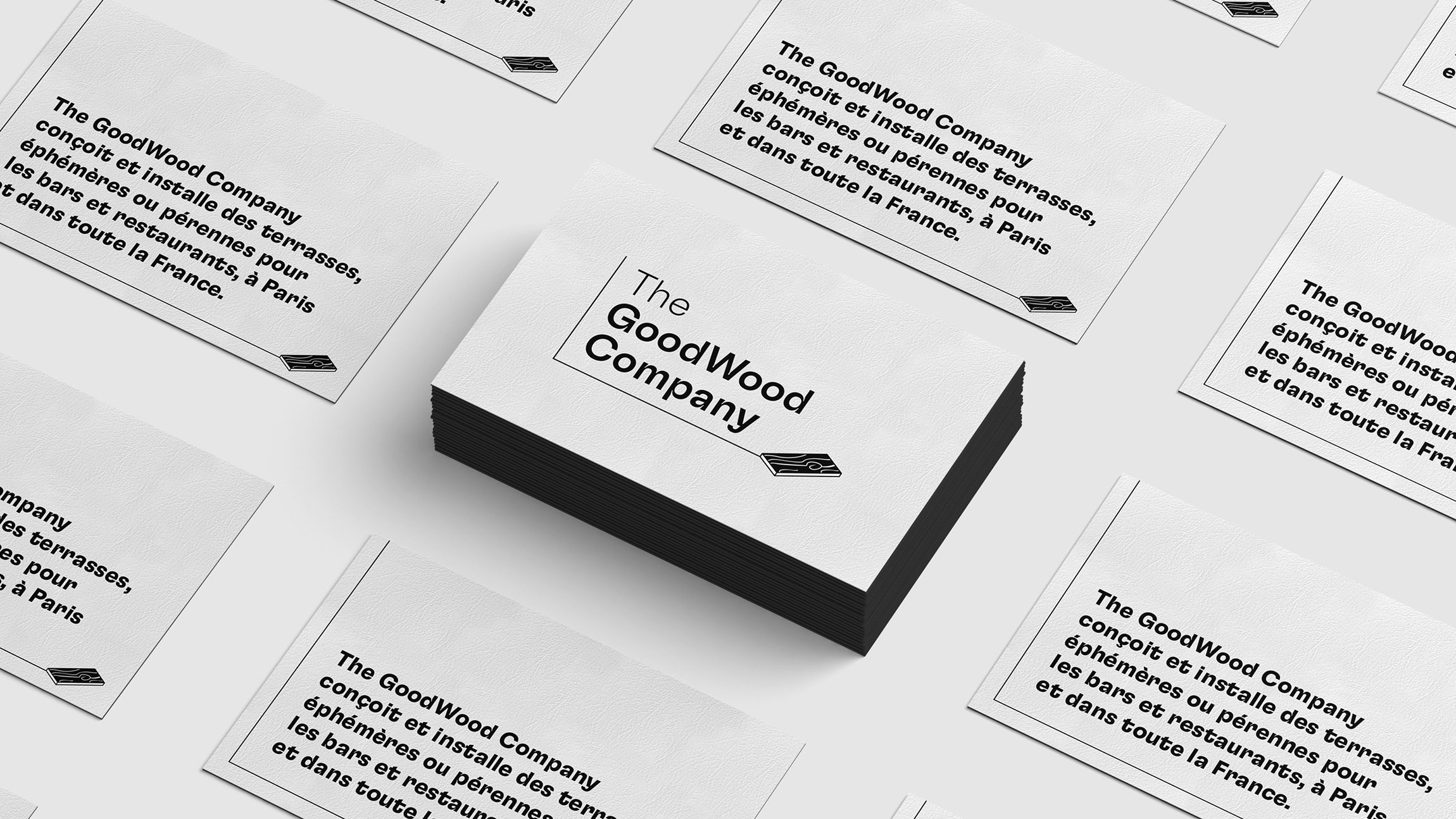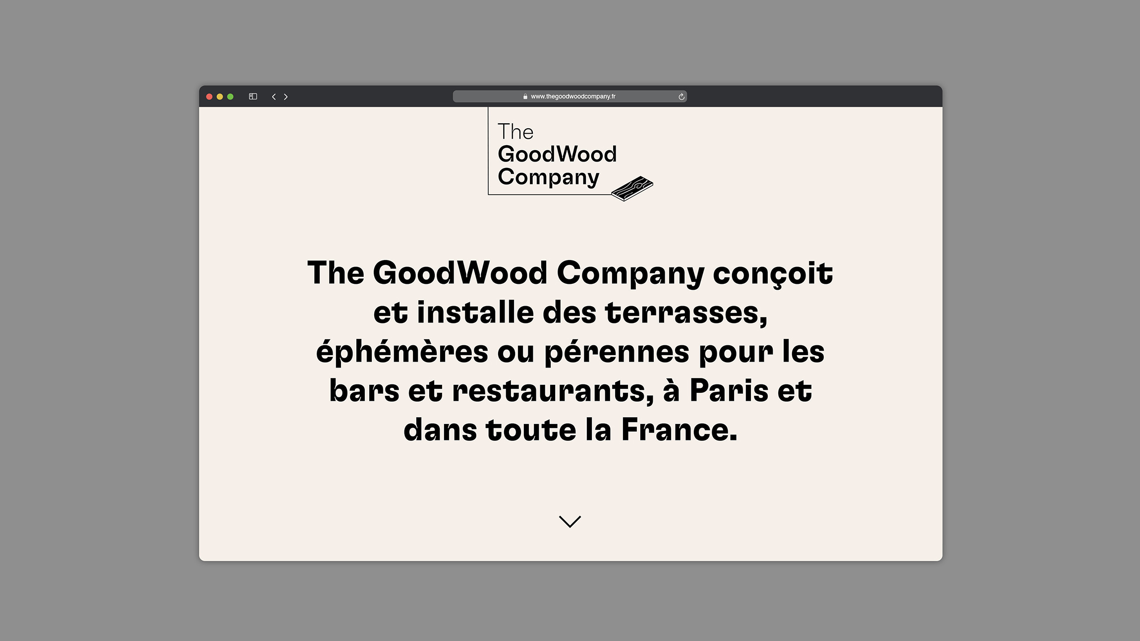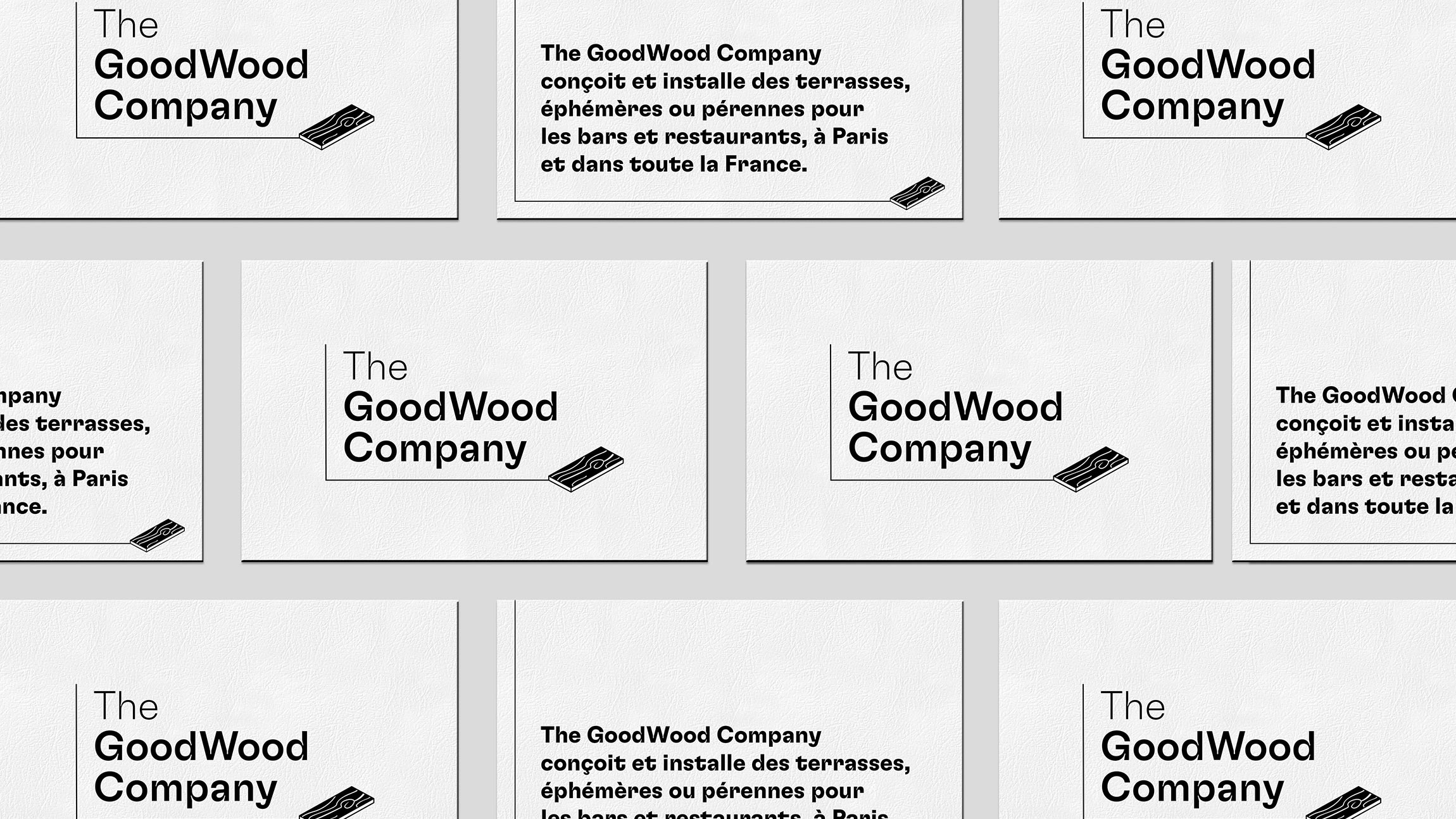 Conception graphique print et web de The GoodWood Company, concepteur et fabricants de terrasses éphémères pour les bars et restaurants.