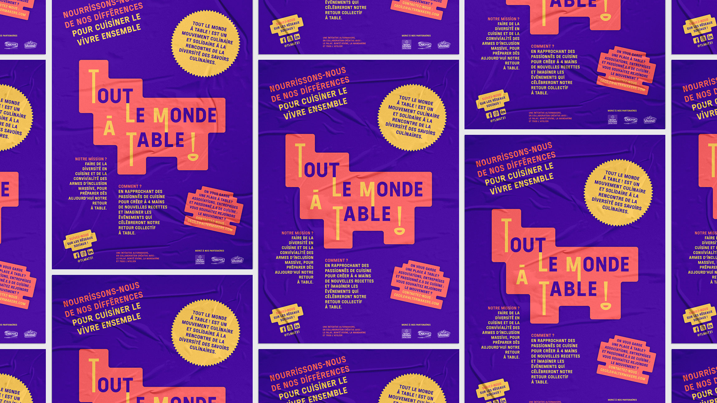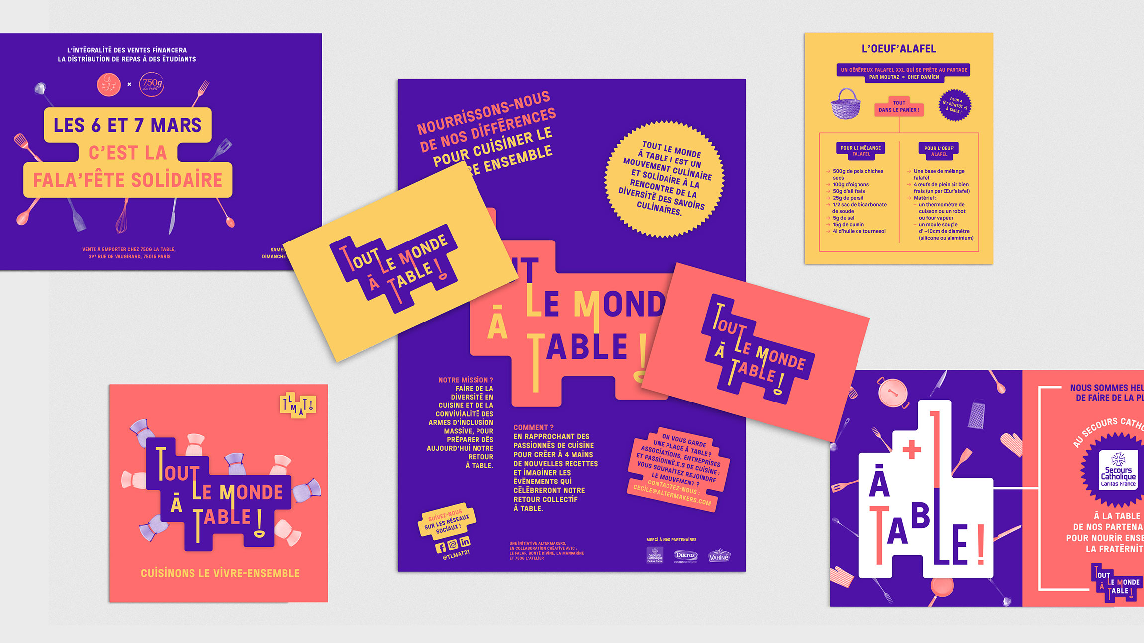 Conception de la charte graphique de Tout Le Monde À Table ! Mouvement culinaire et solidaire autour du lien social.